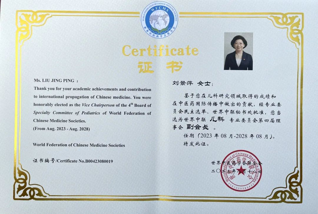 5001拉斯维加斯药业集团党委书记、董事长刘景萍当选世界中医药学会联合会儿科专业委员会第四届理事会副会长